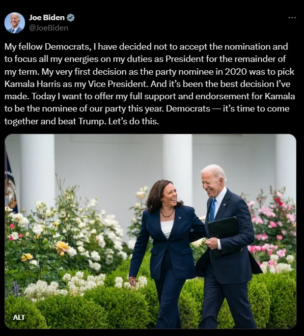 Biden Drops Out of the Presidential Election, Endorses Harris